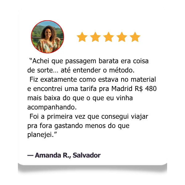 Só o método completo de busca e economia em passagens aéreas valeria facilmente R$ 197, considerando o quanto ele pode te fazer economizar em uma única viagem.